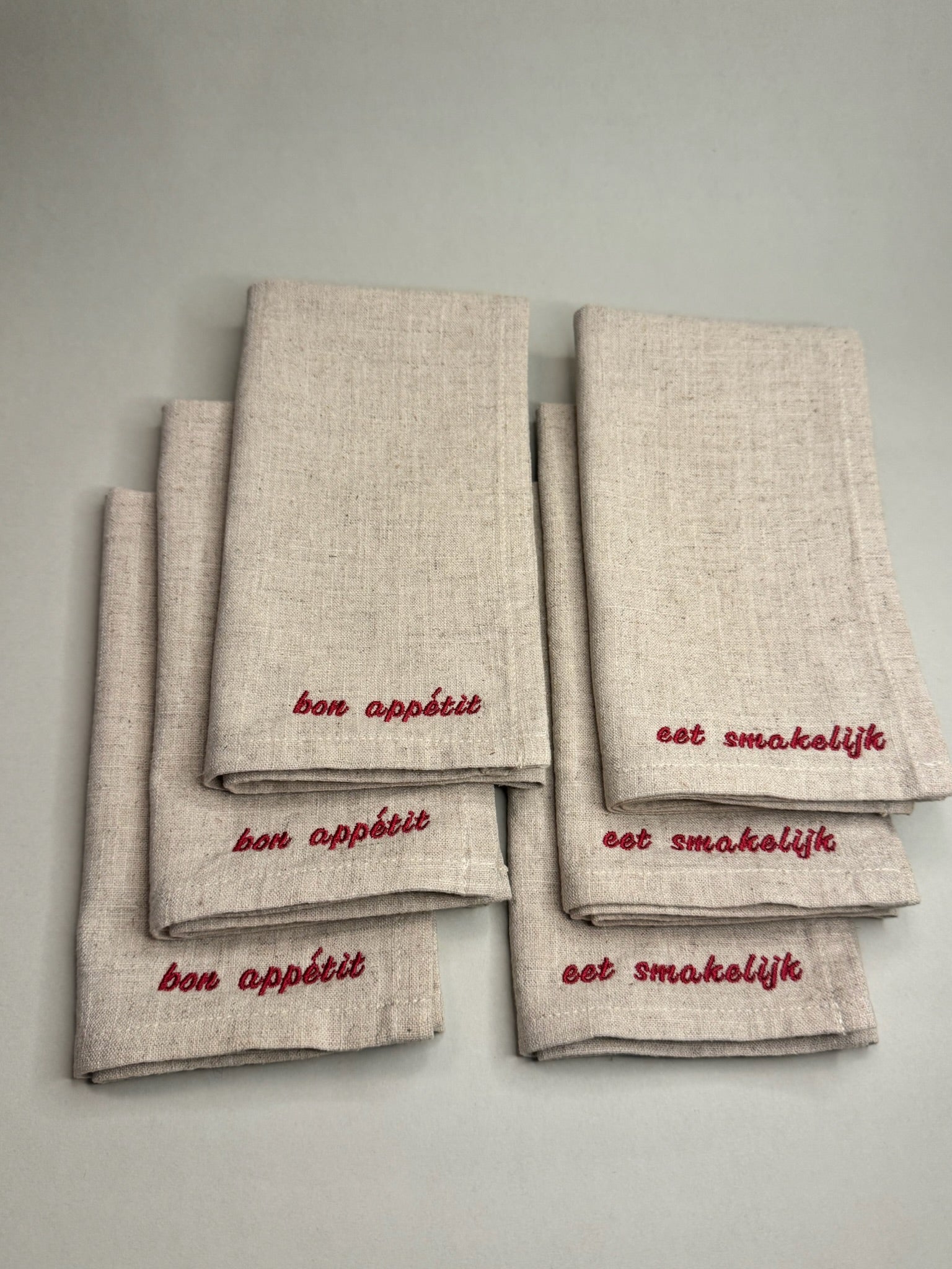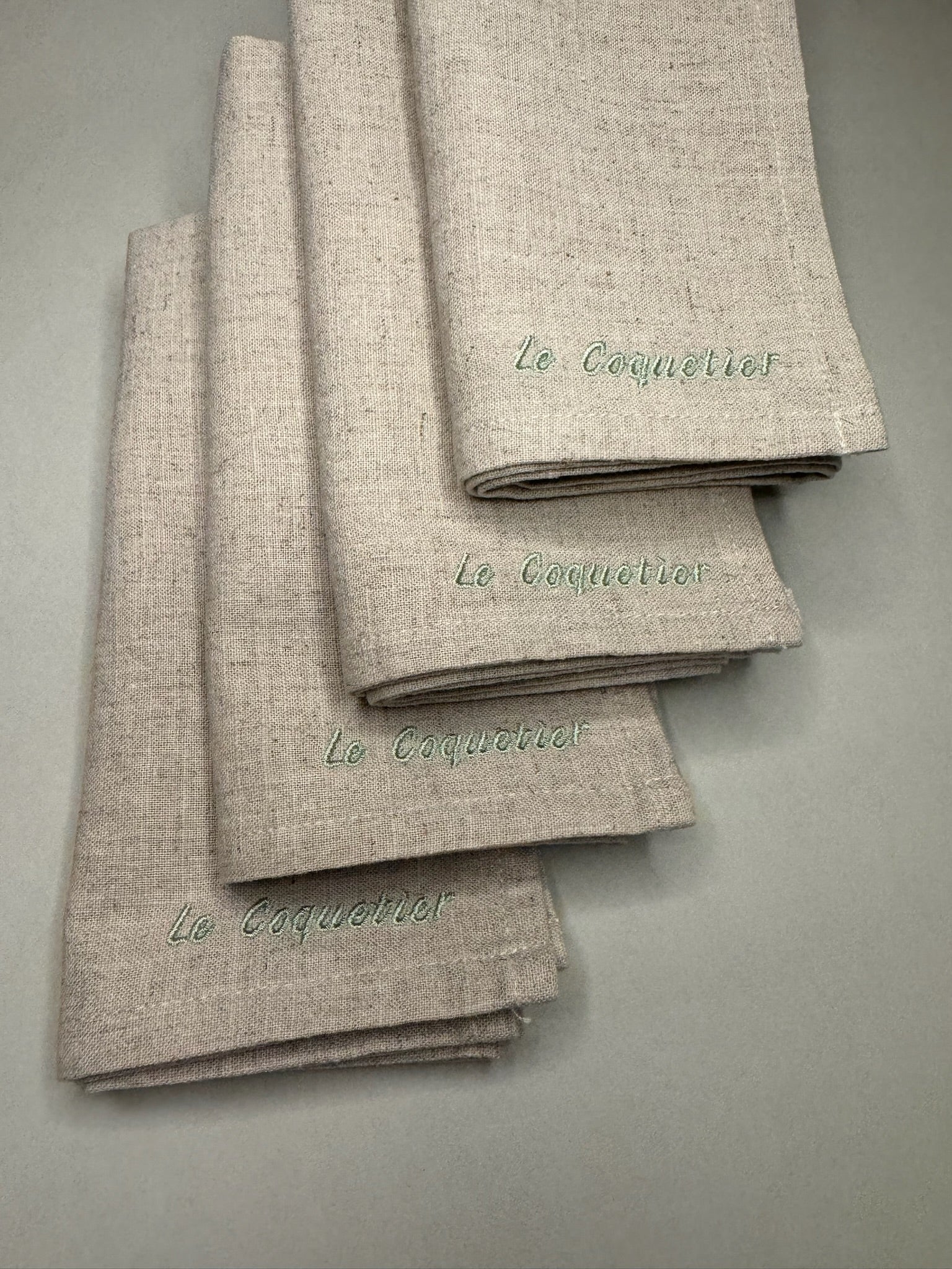 Swoon is delighted to offer fully customizable linens and design services to the restaurant, wedding and retail industries. From fabric choice to stitching, custom embroidery, finishing embellishments and more; we love to collaborate on one-of-a-kind napkins, cocktails, tea towels and whatever else one can imagine.